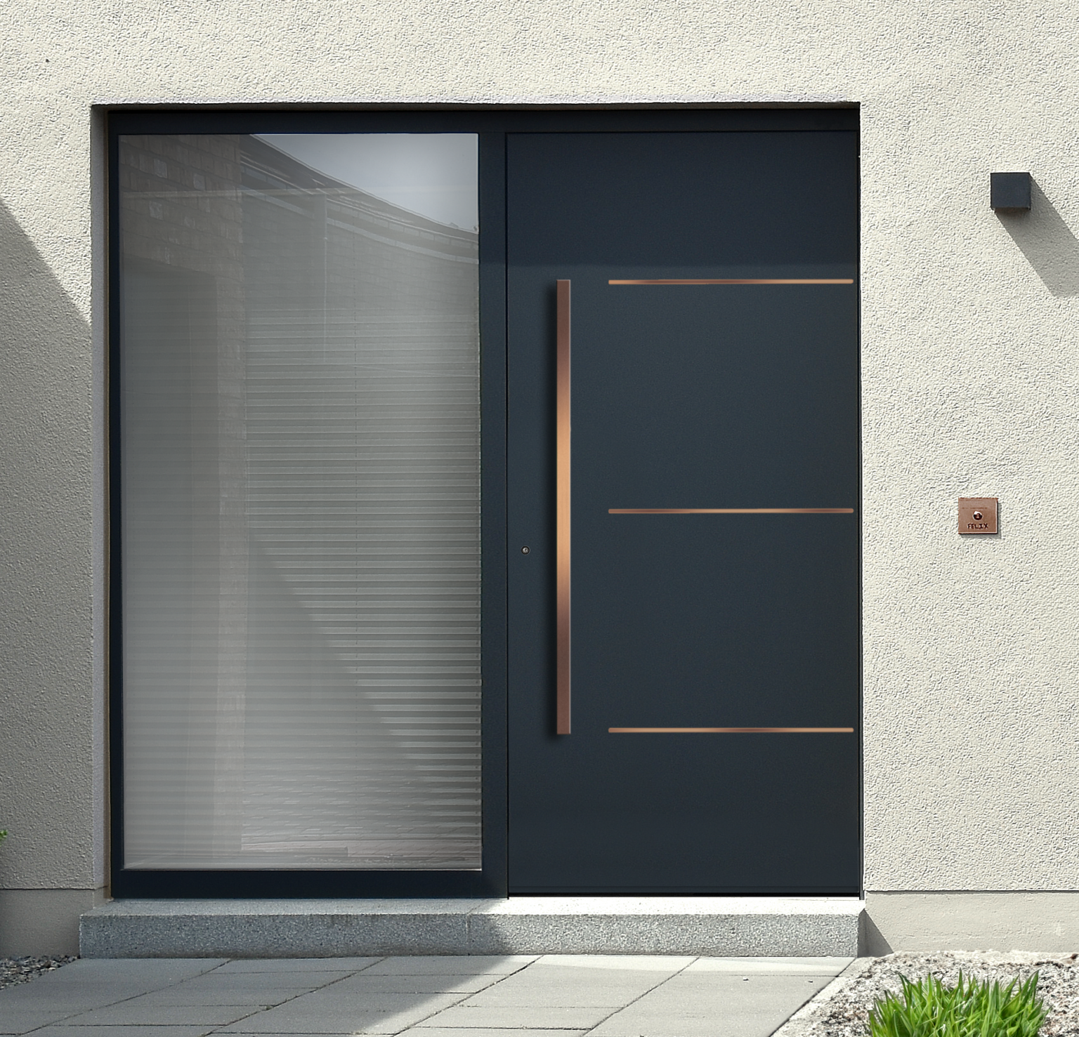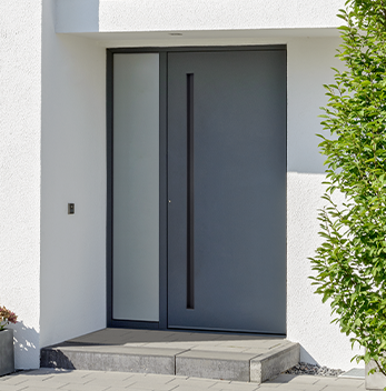 Für designorientierte Kunden gibt es die Aluminiumhaustür SELECTION mit Panorama-Seitenteil. Diese Lösung maximiert die Glasfläche für optimalen Lichteinfall und schafft ein harmonisches Gesamtbild.